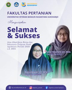 Pelantikan termasuk jajaran pengelola prodi di Fakultas Pertanian. Kegiatan ini merupakan bagian dari upaya penguatan tata kelola akademik dan peningkatan mutu pendidikan tinggi di Fakultas Pertanian, sekaligus menjadi momentum penting dalam mendorong program studi agar semakin berkembang, inovatif, dan adaptif terhadap kebutuhan dunia pertanian dan agroindustri. Acara pelantikan berlangsung khidmat dan dipimpin langsung oleh Rektor Universitas Veteran Bangun Nusantara, Prof. Farida Nugrahani, M.Hum., serta dihadiri oleh jajaran pimpinan fakultas, dosen, dan tenaga kependidikan.